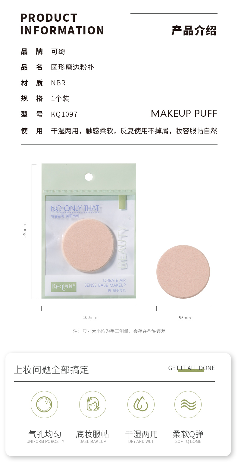 KQ1097 圆形磨边粉扑